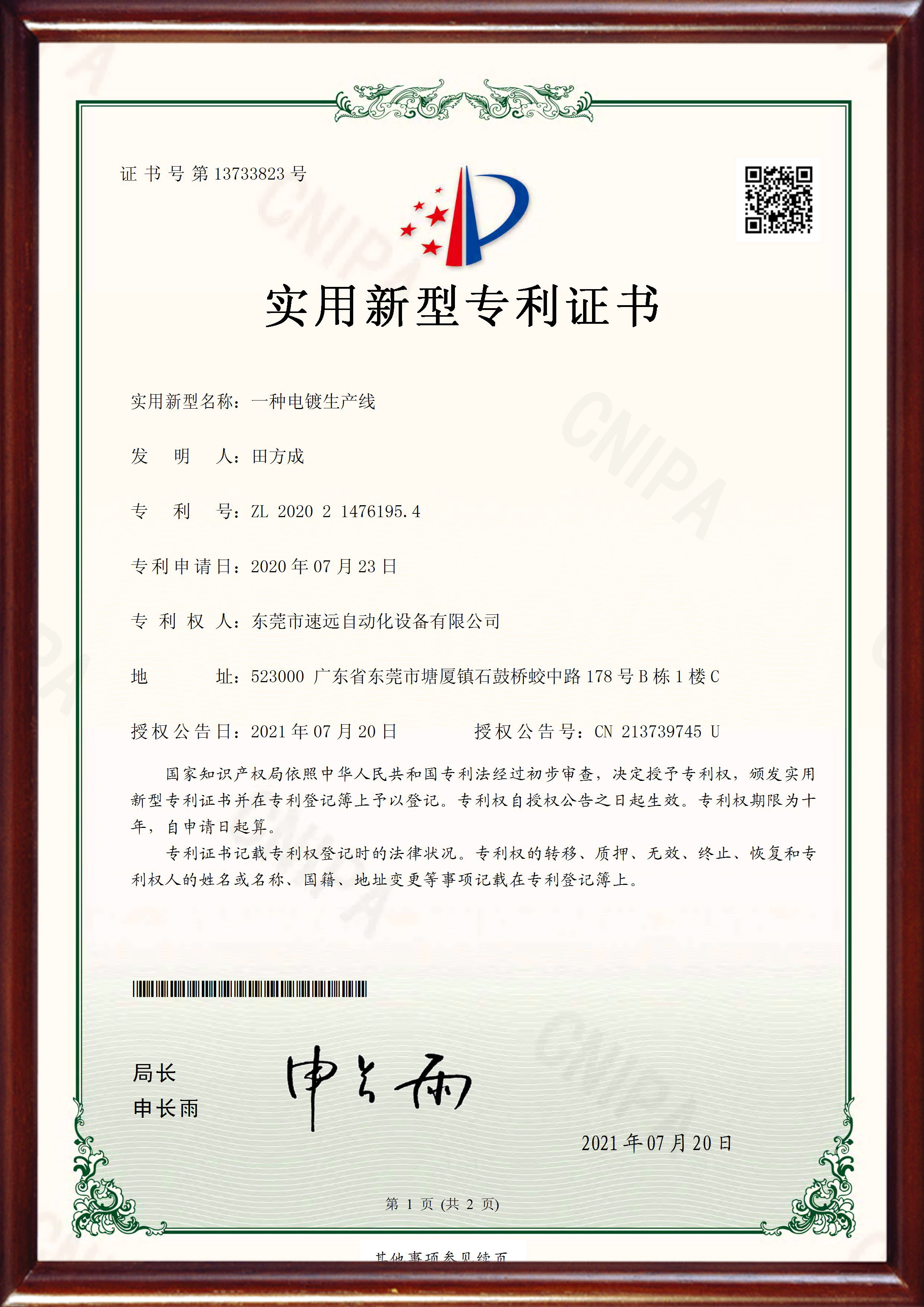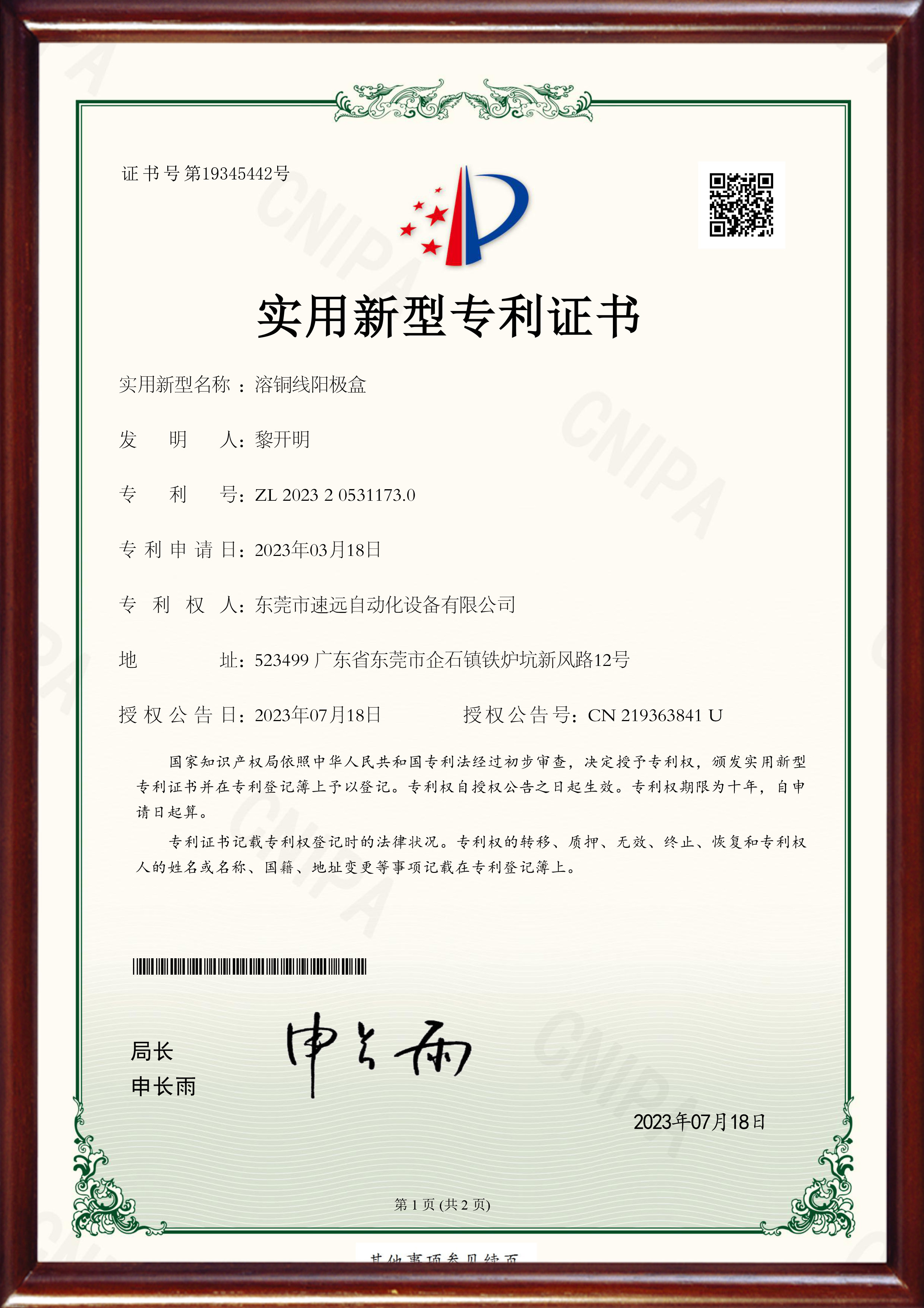 专利证书